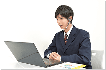 受講の流れ ENTRY GUIDE 東進中学NET > 受講の流れ 塾 1. 登校 ①登校したら受付で学生証のバーコードを使って登校チェックします。 ②保護者様に投稿確認のメールが送られます。 2. 受講開始 ①着席したら、受講用PCのログイン画面に、自分のIDとパスワードを入力。 ②TOPページの「授業をうける」をクリックして授業START! 3. ウォーミングアップ 集中力を高める英語と数学の授業では、脳を活性化させて授業の効率をあげるため、ウォーミングアップを行います。 集中力を高めるためには時間を意識することが 重要です。東進中学NETのトレーニングには全て タイマーが設置されています。また、音を耳から入 れ、発声することで脳はより活性化されます。 4. 授業 VOD授業(60分) 選りすぐりの実力講師による映像授業です。 授業は専用の東進テキストを使います。 ①授業はいくつかのパートに分かれており、順番に学習を進めていきます。 ②英語と数学の授業では、楽しく学習できるように コラムが用意されています。 英語の授業では、音読を中心にしているため、実際に発音していきます。 ネイティブ音声で聞きとりや音読の練習ができます。 5. トレーニング 授業内容を「知識を蓄積して出す」 ことで、 知識を自分のものにする! VOD授業が終了すると、PCトレーニング画面 に切り替わり、授業で学習した範囲から、解答 の正誤判定がすぐにでるトレーニング問題が出題されます。 ①一問一答のトレーニング問題にチャレンジ! 解答方法は、 選択式・ドラッグ&ドロップ式・直接入力の3種類。 制限時間内にできるだけ沢山の問題に挑戦します! ②時間が来たら切り替わる結果表示画面で自分の成果をチェック! トレーニング問題はテキストに掲載されているので、途中で式やスペルを実査に書き込みながら手を動かして学習を進めていく方式です。 6. 確認テスト 習ったことをその場ですぐに確認する 当日の学習内容を確認テストでチェックします。 すぐに採点されるので、弱点を発見し、重点的 に復習ができます。分からない内容を残したま ま先に進むこともありません。 家庭 7. 課題演習 繰り返すことで知識を定着する 宿題は学力POSのシステムで管理。 担任が宿題の達成状況を確認して指導します。 ドイツの心理学者エビングハウスの実験によれば、 機械的に暗記した単語は1時間後にはなんと56%、 6日後には約80%忘れていることが実証されています。 高速マスター基礎力養成講座